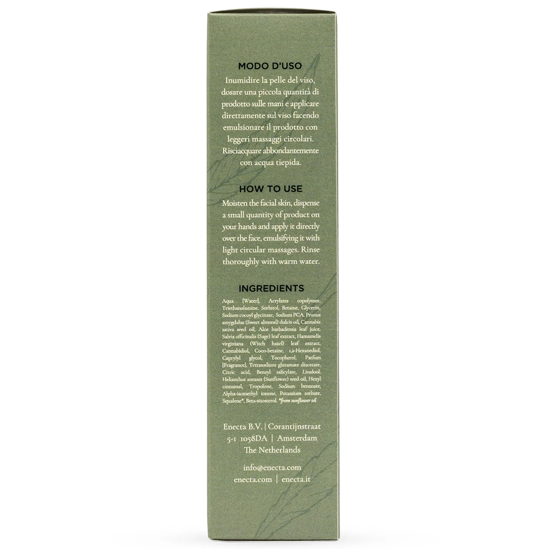 Deterge a fondo delicatamente tutti i tipi di pelle, anche le più sensibili o soggette ad acne, grazie alla presenza di CBD. Arricchito con olio di semi di canapa pressato a freddo, oltre ad idratare, agisce come sebo-regolatore. Protegge e rispetta il pH della pelle.